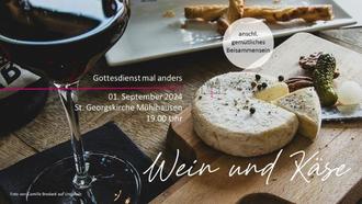 | 19.00 Uhr | Gottesdienst mal anders in Mühlhausen, Kirche, -Wein und Käse- anschl. gemütliches Beisammensein (Pfrin. Lehmann) |