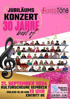 Am Samstag, 21.September, um 19 Uhr feiert der Gemixte Chor Haste Töne aus Berndorf seinen 30. Geburtstag in der Festscheune in Gembeck. Der für moderne Chormusik stehende Verein hat ein vielfältiges und abwechslungsreiches Programm auf die Beine gestellt, das sowohl einen musikalischen Rückblick beinhaltet als auch mit neuen Projekten aufwartet. Gegründet wurde Haste Töne im Herbst 1994 im Zuge der Weiterentwicklung des seit 1992 bestehenden Kinderchores. Seither treffen sich Sängerinnen und Sänger unterschiedlichen Alters - vom Teenager bis zur Rentnerin - aus einem Umkreis von 25 Kilometern zur wöchentlichen Probe in Berndorf. Durch zahlreiche Auftritte im Rahmen von Familienfeiern und Gottesdiensten, Dorf- und Stadtfesten, Liederabenden und eigenen Konzerten hat sich Haste Töne als fester Bestandteil der regionalen Chorlandschaft einen Namen gemacht. Die pandemiebedingten Einschränkungen wurden durch guten Zusammenhalt gemeistert, sodass sich die Chorgemeinschaft aktuell mit rund 40 aktiven Mitgliedern präsentiert. Von Beginn an maßgeblich prägend für den Verein ist Lisa Herrlich, die den Chor seit der Gründung bis heute mit Engagement und neuen Ideen leitet.