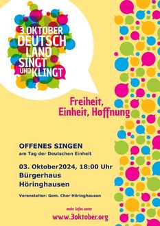 Die Initiative "3. Oktober - Deutschland singt und klingt" lädt alle Generationen und Kulturen zum offenen Singen und Feiern ein.