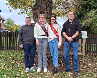 Bürgermeister Friedrich Vogel, Apfelkönigin 2025 Emma Nagel, Apfelkönigin 2024 Lilli Zimmermann, Ortsvorsteher Jan Eigenbrodt