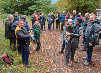 Zusammen ging es von dort zu Fuß entlang der gemeinsamen Grenze entlang der „Fuchslöcher“, über den Aspen zum Rudolfshagen. Von dort erfolgte der Rückweg und um 13:30 erreichte man wieder den neuen Festplatz am DGH. Zwischendurch wurde immer wieder haltgemacht, um den Teilnehmern mittels „Stutzen“ die Lage der einzelnen Grenzsteine einzuprägen.