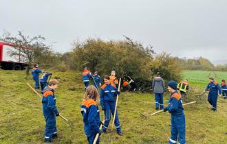 Im Rahmen eines kreisweiten Aktionstages zum Natur- und Umweltschutz trafen sich Jugendliche der Feuerwehren aus Twiste, Gembeck, Mühlhausen und Mengeringhausen am 02.11.2024 am Berndorfer Feuerwehrgerätehaus.