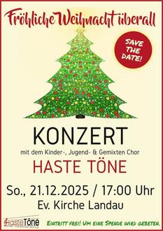 Unter diesem Motto laden der Gemixte Chor und der Kinderchor von „Haste Töne“ aus Berndorf zu einem besinnlichen Weihnachtskonzert in die Landauer Kirche ein.