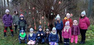 Im unserem letzten Workshop haben wir Futter für die Vögel hergestellt. Diese galt es nun an den" Vogel" zu bringen. Auf einem privaten Grundstück außerhalb des Dorfes entstand ein Futterbaum für Tiere des Waldes. Die Kinder waren eifrig bei der Sache und erfuhren welches Futter für welche Tiere gedacht ist. Den Einwand unserer Kleinsten, das doch die Tiere gar nicht kommen können, weil das doch ein privates Grundstück ist, konnten wir dann doch ausräumen. Ab Januar findet monatlich ein Workshop für die Kinder unseres Vereins statt. Es wird immer wieder ein neues Thema geben, welches wir gemeinsam angehen und umsetzen werden. Kinder die Lust haben mit zu machen, können sich bei uns melden.