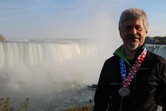 Bernd Neumann bei seinem 100. Marathon an den Niagara Falls