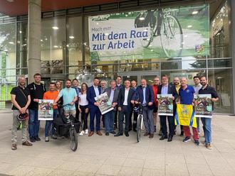 Eine von vielen Ideen, um Radkilometer zu sammeln: Mit dem Fahrrad zu Arbeit. Die Akteure aus den Kommunen trafen sich mit Landrat Andreas Siebert und Nahmobilitätskoordinator Stefan Arend zum Auftakt am Kreishaus des Landkreises.