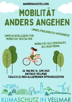 Der Stadt Vellmar lädt alle Bürgerinnen und Bürger herzlich ein, die Wanderausstellung „Mobilität anders angehen“ vom 26. Mai bis zum 16. Juni 2025 im Vellmarer Rathaus zu besuchen.