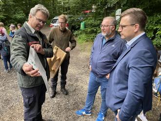 Rainer Weishaar von HessenForst erklärte Bürgermeister Manfred Ludewig und seinem Espenauer Amtskollegen Carsten Strzoda den Ablauf der Aktion.