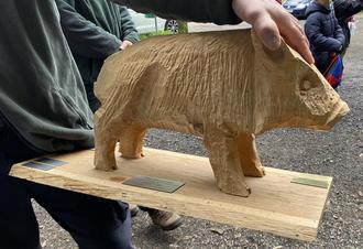 Wandertrophäe - dem Gewinnerteam winkt ein handgeschnitzter "Frischling"