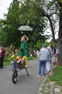 Der 2,40 Meter große Imanuel Immergrün jonglierte vor den staunenden Gästen seinen Schirm und hatte so einige Garten-Tipps parat.