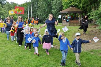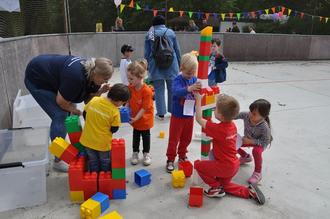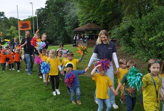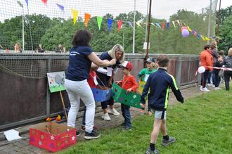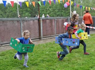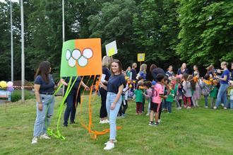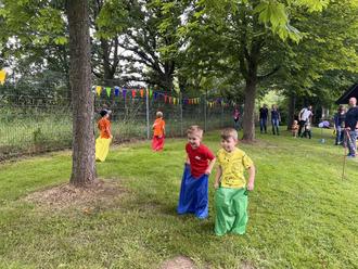 Dort war reichlich Platz für die olympischen Disziplinen wie z.B. „Bobby-Car-Rennen“, ein Turmbau-Areal, Bahnen zum Eierlaufen, Sackhüpfen oder Bootsrennen sowie für Ringsprung, Weitwurf oder einen Geschicklichkeitsparcours.