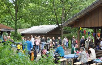Im „olympischen Dorf“ rund um die Grillhütte waren derweil Vorbereitungen für die Verpflegung der olympischen Teilnehmern und die Zuschauer getroffen worden. Der Duft von frischen Waffeln lockte zum Stand des Fördervereins, die über den Nachmittag hinweg viele Liter Teig in leckere Waffeln am Stiel verwandelten. Dazu gab es Angebote an Kuchen und Muffins sowie Bratwurst und Pommes am Grill. Ein Dankeschön auch hier den ehrenamtlichen Helferinnen und Helfern, die alle Hände voll zu tun hatten.