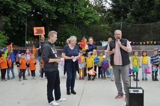 Dort wurden die kleinen Athletinnen und Athleten sowie die Zuschauer offiziell von Kita-Leitung Conny Schulze, Elternbeiratsvorsitzenden Andreas Tolle und Bürgermeister Manfred Ludewig begrüßt, der die Spiele eröffnete und allen Kindern gutes Gelingen und viele Medaillen wünschte.