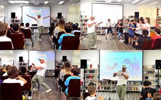 Der Name war Programm: Denn Andreas Hüging – Wunschgast des Büchereiteams und bereits 2018 einmal in Vellmar – las nicht nur, er performte, sang, imitierte Katzenstimmen und bewegte sich wie ein echter Straßentiger. Dass er den gesamten Text auswendig kann, war beeindruckend – mindestens so sehr wie sein musikalisches Talent. Mit mitgebrachten eigenen Songs und eingängigen Beats verwandelte er die Schülerinnen und Schüler spontan in den „Straßentiger-Chor“.