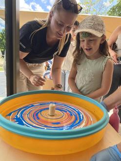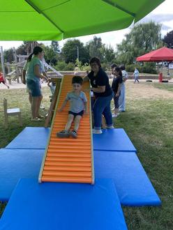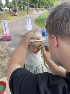 Auf dem gesamten Gelände gab es vielfältige Mitmachaktionen für die Kinder. Neben einer Hüpfburg waren Angebote wie „Horse Hopping“, Kinderschminken und eine Farbschleuder vertreten. Als besonderes Geschenk der Eltern der Vorschulkinder erhielt die Kita eine neue Bank, die zum Ausruhen und Verweilen einlädt.