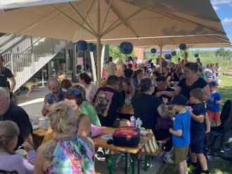 Das Sommerfest wurde von zahlreichen Gästen begleitet, darunter Eltern, Geschwister und Großeltern, die alle gemeinsam für eine fröhliche Atmosphäre sorgten. Besonders beliebt war das Eis vom Jüttes Weidberghof, das bei den sommerlichen Temperaturen reißenden Absatz fand. Für das leibliche Wohl wurde ebenfalls gesorgt: Es gab Kaffee, Kuchen, leckere Bratwurst sowie gekühlte Getränke.