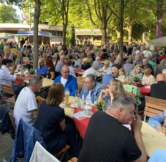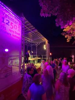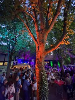 Bis weit nach Mitternacht verwandelte sich der Kastanienhof in eine lebendige Open-Air-Disco, die durch aufwendige Illumination der Tanzfläche noch zusätzlich in Szene gesetzt wurde. Insgesamt war das Fest ein gelungenes Event, das bei sommerlichem Wetter für ausgelassene Stimmung sorgte.