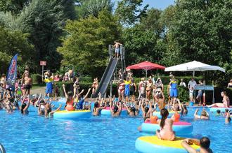 Der Förderverein "Freunde des Freibads" unterstützen die Pool-Party mit einem Kuchenstand und Glitzertattoos für die Jüngsten.