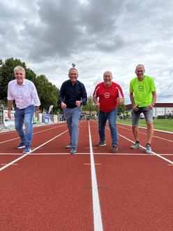 Auf die Plätze, fertig, los... (v.l.) ASV-Schulleiter Manuel Coote, Landrat Andreas Siebert, Bürgermeister Manfred Ludewig und Michael Schütze (Vors. LG Vellmar) gingen symbolisch an den Start.