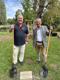 Setzen symbolisch den Spaten an: Bürgermeister Manfred Ludewig und sein Amtskollege Andreas Wimmreuter aus Zell am See.