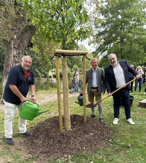 Unter dem Motto „Wurzeln schlagen – Zukunft wachsen lassen“ versammelten sich zahlreiche Gäste im Ahnepark, um den symbolischen Akt des Baum-Setzens mitzuerleben. Bürgermeister Manfred Ludewig und sein österreichischer Amtskollege Andreas Wimmreuter griffen gemeinsam symbolisch zum Spaten. Anschließend wurde die Pflanze angegossen, um ihr einen guten Start ins Leben zu geben.