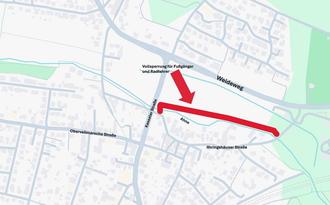Die Bauarbeiten im auf der Karte zu sehenden Bereich werden voraussichtlich bis zum 10.10.2025 andauern. Während dieser Zeit bitten wir alle Radfahrer und Fußgänger, eine entsprechende Alternativroute zu wählen.