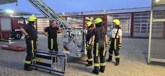 1. Station: Hier sollte mit unserer neuen Drehleiter gearbeitet und die Krankentragehalterung samt Krankentrage montiert werden. Anschließend sollte das 2. OG angefahren werden und per Funk ein Wort buchstabiert werden, ebenso im 3. OG.