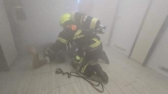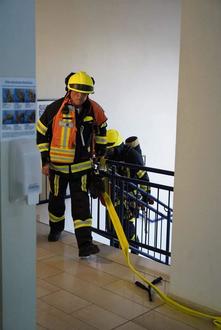Bei Ankunft des ersten Fahrzeugs bot sich der Mannschaft ein schlimmes Bild: Personen, die aufgeregt das Gebäude verließen, Rauch aus einem Wohntrakt und jede Menge ausgelöste Rauchwarnmelder auf dem Display der Brandmeldeanlage. Im Gebäude wurden drei Personen vermisst. Umgehend ging es an die Menschenrettung, ebenfalls wurde alles für die Brandbekämpfung eingeleitet. Des Weiteren fand parallel zu allen Maßnahmen der Feuerwehr die Evakuierung der Bewohner in dem Gebäudetrakt durch das Pflegepersonal statt, realistischer konnte es nicht sein. Die erste Person wurde mit Brandverletzungen und Rauchgasvergiftung (Rauchgasintox) dem Rettungsdienst übergeben. Eine weitere Person wurde über die Drehleiter aus den 1. OG gerettet und eine verletzte Altenpflegerin, aufgrund eines Knochenbruchs (Fraktur) samt Matratze gerettet. Der Anwesende Notarzt und zwei Rettungswagen wurden voll und umfänglich beschäftigt. Am Ende war alles gut, als sich die Übungsleitung zu erkennen gab.