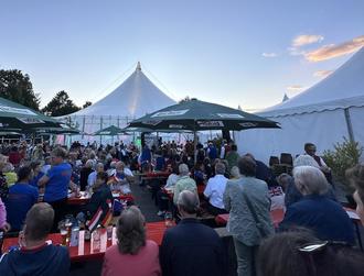 Ein voller Biergarten zeugt von der großen Resonanz an den Feierlichkeiten