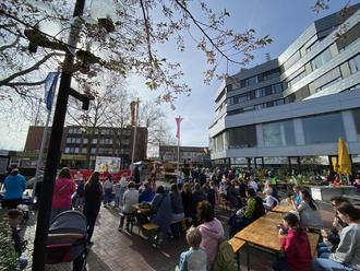Bei frühlingshaften Temperaturen und Sonnenschein kamen viele Besuchende auf den Rathausplatz.