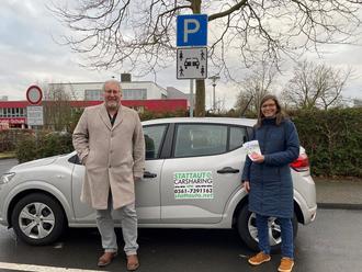Bürgermeister Manfred Ludewig und Klimaschutzmanagerin Ines Wagner starteten im Januar 2025 offiziell das neue "Car-Sharing" Angebot in Vellmar.