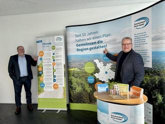 Bürgermeister Manfred Ludewig und ZRK-Direktor Dirk Stochla eröffneten die Wanderausstellung "50 Jahre ZRK" - passend zum Jubiläumsjahr- im Rathaus.