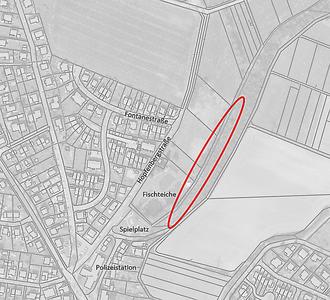 Konkret geht es um den Bereich nördlich der Polizeistation bzw. des Spielplatzes an der Hopfenbergstraße.