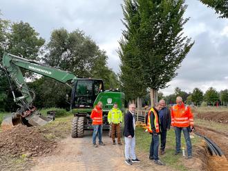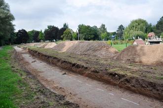 Bereits weithin sichtbar sind die Erdhügel und der breite Graben neben dem bisherigen asphaltierten Fuß- und Radweg. Dieser wird nach Fertigstellung der zukünftige Gehweg sein, der vom Radweg getrennt sein wird. Durch die Trennung wird eine wesentliche Verbesserung, gerade in diesem Bereich erreicht, ist sich Uwe Niede vom Fachbereich Stadtentwicklung und Umwelt sicher. So werden Spaziergänger nicht mehr von Radfahrern gestört, Gefährdungen werden reduziert und gelegentliche Interessenskonflikte vermieden.