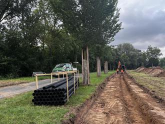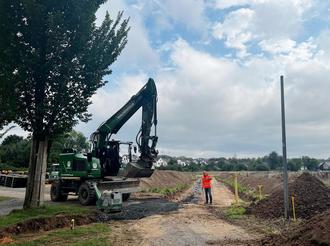 Um zügig voranzukommen, sei die Großbaustelle mit 5 Bauarbeitern und 2 Baggern im Einsatz. Nach Abschluss der Erdarbeiten für die Stromtrasse folgt dann der Ausbau des Gehweges und zum Schluss die Herstellung des Radweges. Bis dahin wird der bisherige Weg zum Befahren und Transportieren für die Baufahrzeuge genutzt.