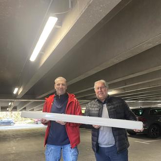 Im Oktober wurde binnen einer Woche die Beleuchtung in der mittleren Ebene des Parkdecks am Rathaus umfassend modernisiert. Anstelle der bisherigen Leuchtstoffröhren wurden nun 35 energieeffiziente LED-Lampen sowie zwei Notbeleuchtungen installiert.