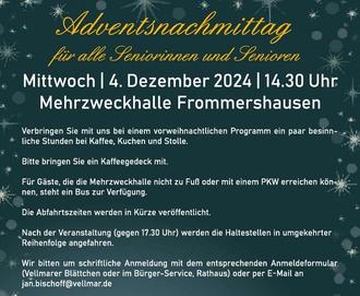 An dem Adventsnachmittag am 04.12.2024 in der Mehrzweckhalle Frommershausen nehme ich mit folgender Person teil: