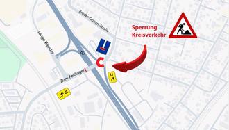 Aufgrund von Bauarbeiten im Kreisel Dörnbergstraße erfolgt in der Zeit vom 15.11.2024 (ab 20.00 Uhr) eine Vollsperrung für den Individualverkehr.