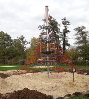 Die neue Anlage wurde bereits aufgebaut, das Team vom Bauhof hat bei diesem Projekt die Erdarbeiten übernommen und wird nach Abschluss der Arbeiten die Umgebung der Anlage wiederherstellen. Bis die Kletterpyramide jedoch vollständig in Betrieb genommen werden kann, ist noch Geduld gefragt. Die Beton-Fundamente müssen vollständig aushärten, damit die Sicherheit gewährleistet ist. Die Planer gehen davon aus, dass die neue Kletteranlage Anfang Dezember eröffnet werden kann.
