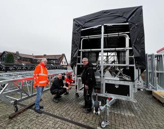 Rechtzeitig vor ihrem ersten Einsatz auf dem Vellmarer Weihnachtsmarkt konnte die bei der Firma Stagemobil Eckart Fahrzeugbau GmbH in Hofgeismar gefertigte Trailerbühne abgeholt werden.
