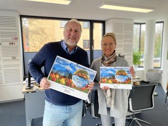 Bürgermeister Manfred Ludewig und Sabine Joyner von der Stadtverwaltung präsentieren den neuen "Vellmar-Kalender".