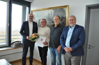 v.l. Präsident Patrick Liesching, Manfred Knoch, Ortsgerichtsvorsteher Hubert Neetzel und Bürgermeister Manfred Ludewig gratulieren zur Ernennung.