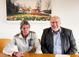 Bürgermeister Manfred Ludewig würdigt und verabschiedet in einer kleinen Feierstunde den langjährigen Mitarbeiter Siegfried Geszner