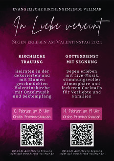 Die Anmeldung für den Segen erfolgt ebenso auf unserer Homepage: https://www.kirche-vellmar.de/valentinstag-2024/