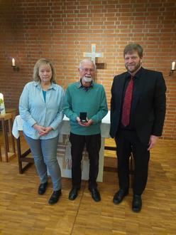 Am 18.01.2026 wurden in der Johanneskirche Vellmar-West in einem feierlichen Gottesdienst zwei langjährige Mitglieder des Ortskirchenvorstandes Vellmar-West, Heike Müller und Peter Kepper, verabschiedet. Doch wie kann man Personen, die nicht gerne im Mittelpunkt stehen, würdig verabschieden? Heike Müller war 18 Jahre im Kirchenvorstand tätig und Peter Kepper war seit 1982 im Kirchenvorstand tätig. Pfarrer Aschenbrenner würdigte, dass Heike Müller damals noch im Kirchenvorstand, später im Ortskirchenvorstand und als langjährige Küsterin für das Kirchenzentrum Vellmar-West unermüdlich im Einsatz war. Auch ihre Familie habe mitgeholfen. So eine Aufgabe sei auch nur zu bewältigen, wenn man Rückendeckung aus der Familie habe. Heike Müller möchte sich nun mehr um ihre Familie kümmern und mehr Zeit mit ihren Enkeln verbringen.