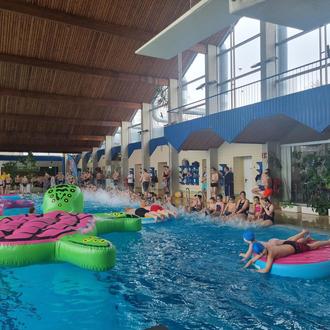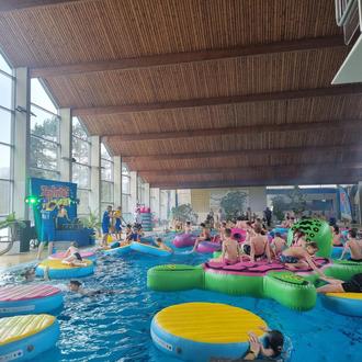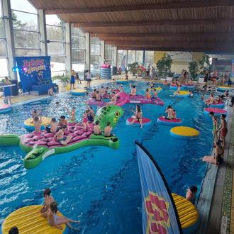 Für das perfekte Sounderlebnis sorgte das Zephyrus-Discoteam – vier talentierte DJs aus Oerlinghausen, die mit ihrer beeindruckenden 8.000 Watt Anlage für mitreißende Beats sorgten. Animationen und Mitmachaktionen garantierten ein unvergessliches Erlebnis für alle Gäste. Das Becken wurde zu einer bunten Wasserwelt: Aufblasbare Flamingos schwammen fröhlich umher, während mutige Wasserfans den „Moonwalk“ im Wasser ausprobierten.