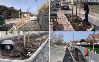 Die neuen Baumscheiben am Fahrbahnrand wirken gleichzeitig als Vekehrsberuhigung, der Autoverkehr wird dadurch langsamer und sicherer und auch der Gehweg wird wieder in voller Breite nutzbar sein.