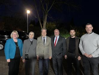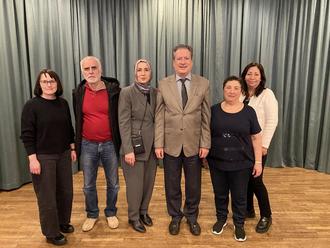 v.l. Vizelandrätin Silke Engler, Zeynep Coskuner (Vors. Ausländerbeirat Vellmar), Generalkonsul Erdinc Evirgen, Bürgermeister Manfred Ludewig, Yunus Emre Ulas (Vors. Ausländerbeirat Landkreis Kassel) und MdB Daniel Bettermann