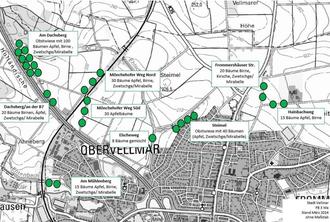 Die Stadt Vellmar hat ca. 250 Obstbäume, welche sie an Privatpersonen für 5,00 € für eine Saison verpachtet. Es sind hauptsächlich Apfelbäume, welche überwiegend „Alte Sorten“ tragen, wie z.B. Gravensteiner, Ingrid Marie oder Goldparmäne. Alte Sorten sind auch oft für Allergiker genießbar. Es gibt aber auch ein paar Birnen-, Zwetschgen- und Mirabellenbäume.
