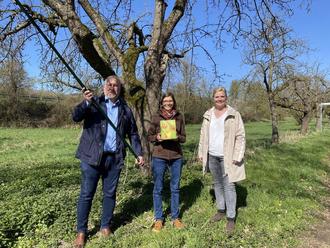 Bürgermeister Manfred Ludewig, Klimaschutzmanagerin Ines Wagner und Sabrina Kilian vom Bauhof freuen sich über viele neue Pächterinnen und Pächter.